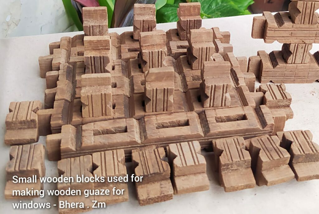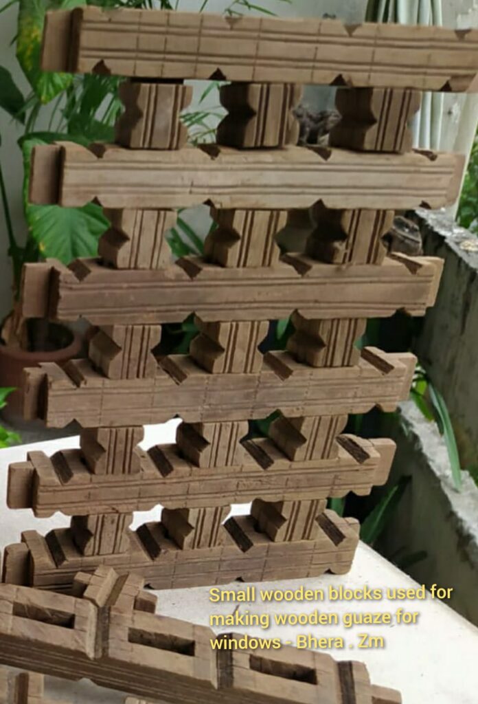 Antiques and Artifacts Related to Bhera. Handmade, lightweight, small pieces of wooden blocks were used to make window gauze in Bhera. Shared with Courtesy: Zahid Mumtaz and family. Part 1. To be continued