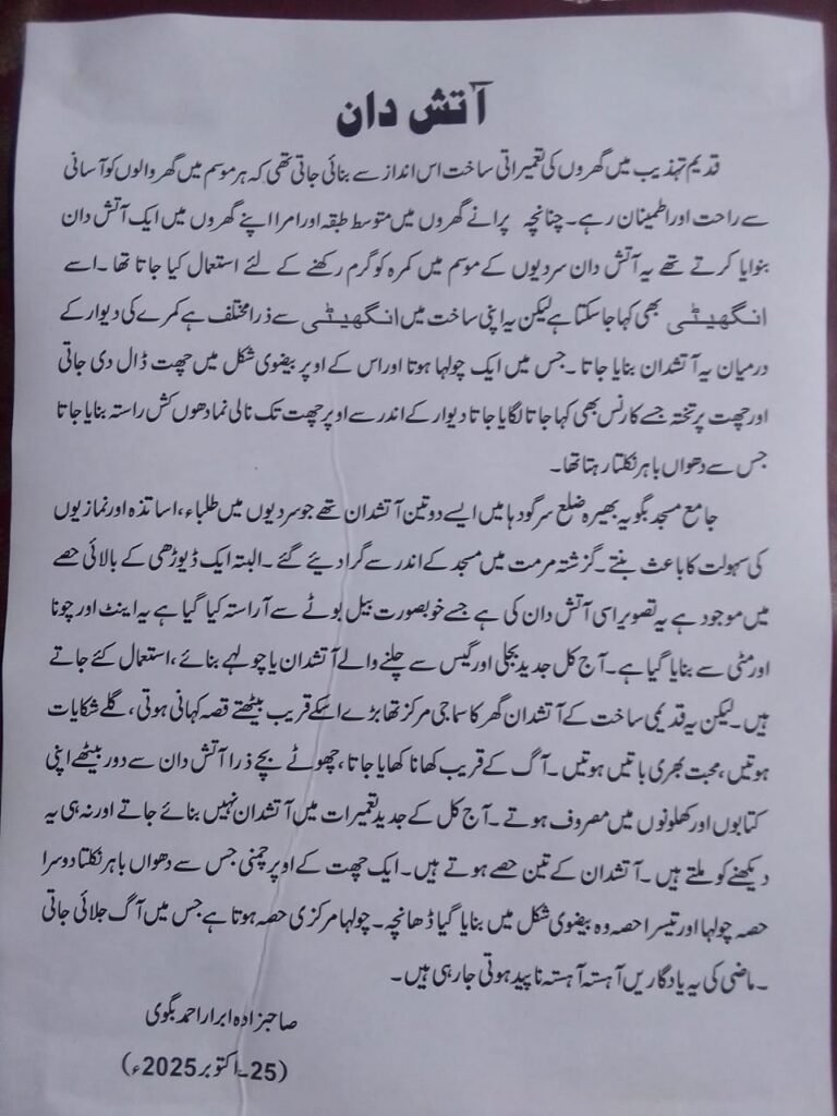 Atish dan ( Fireplace or Grate). See on the website, bhera.org, under the category, “Miscellaneous “. The link is given below: