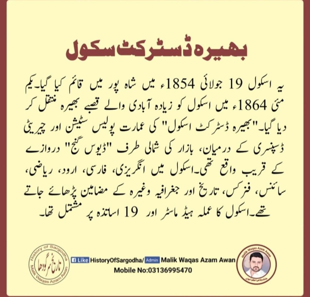 I have written a bibliographic sketch of his younger brother, Colonel Muhammad Ali Noon, Armoured Corps. Those interested may contact me on Whatsapp (0317 5404161) or Email (sheikhzahidmumtaz@ gmail.com). Many more noteables studied at GHS Bhera, but it is difficult to mention their names. Students from far-flung areas attended in this school, as it had a boys’ hostel.