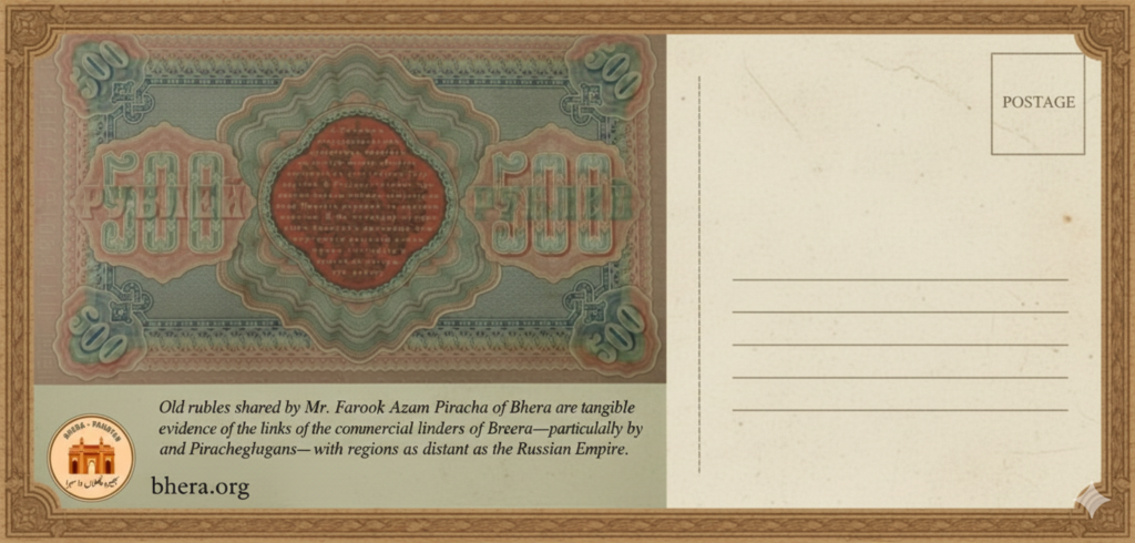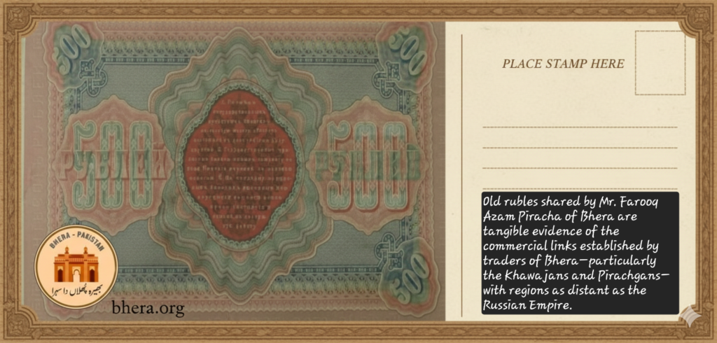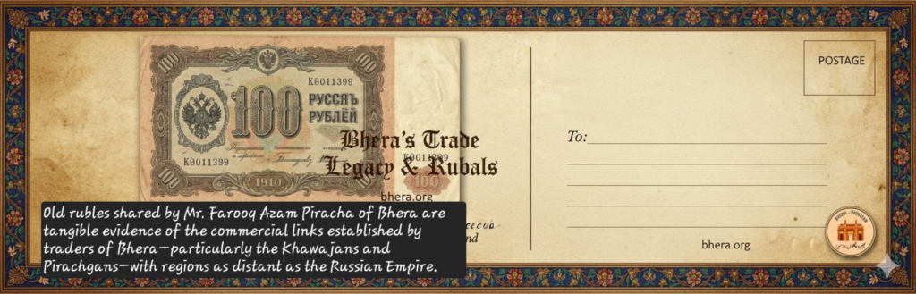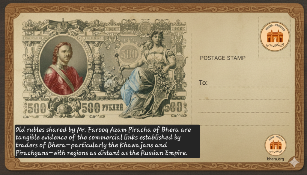 These rubles are more than old currency; they are tangible evidence of the commercial links established by traders of Bhera—particularly the Khawajans and Pirachgans—with regions as distant as Russia. Long before modern transport and banking, merchants from Bhera travelled across caravan routes, sustaining trade networks that connected Punjab with Central Asia and beyond.