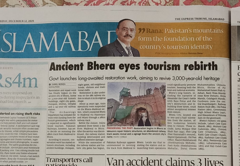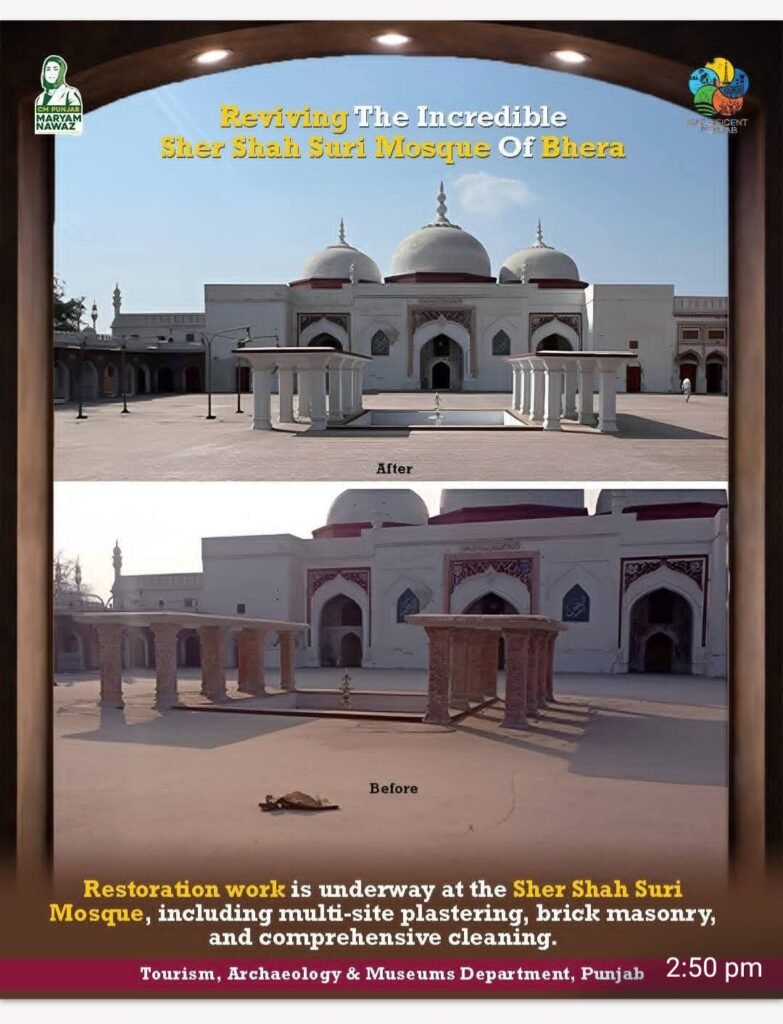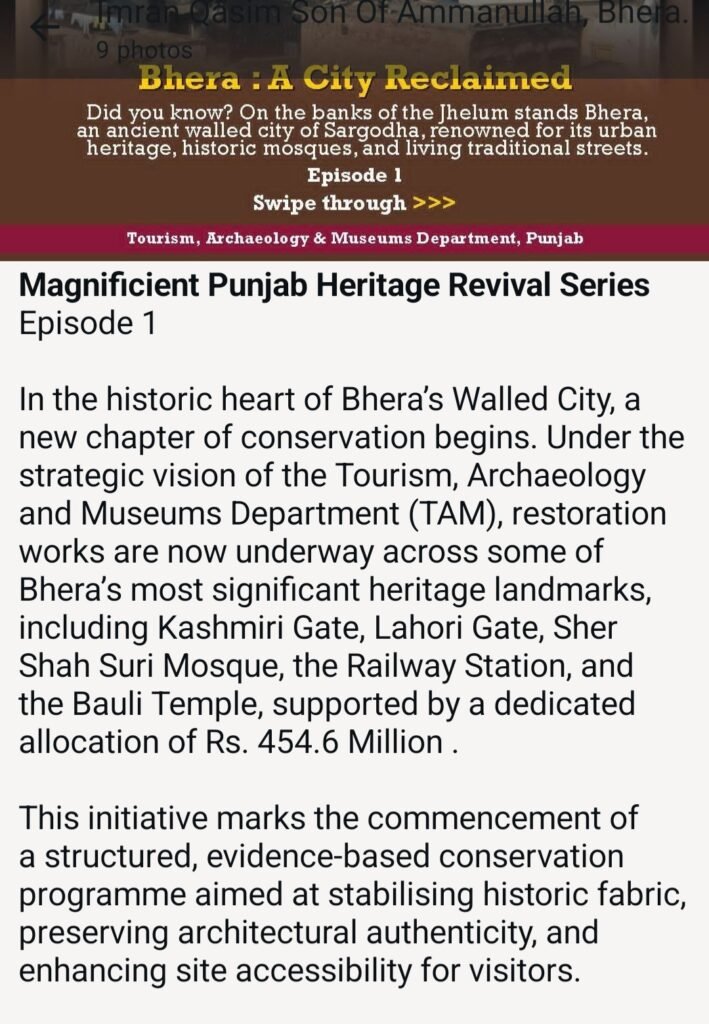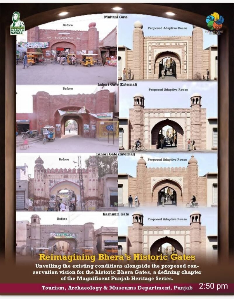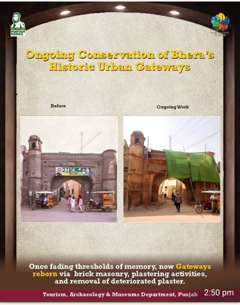 In the historic heart of Bhera’s Walled City, a new chapter of conservation begins. Under the strategic vision of the Tourism, Archaeology and Museums Department (TAM), restoration works are now underway across some of Bhera’s most significant heritage landmarks, including Kashmiri Gate, Lahori Gate, Sher Shah Suri Mosque, the Railway Station, and the Bauli Temple, supported by a dedicated allocation of Rs. 454.6 Million.