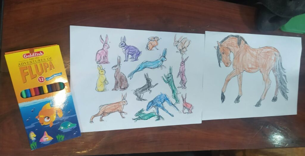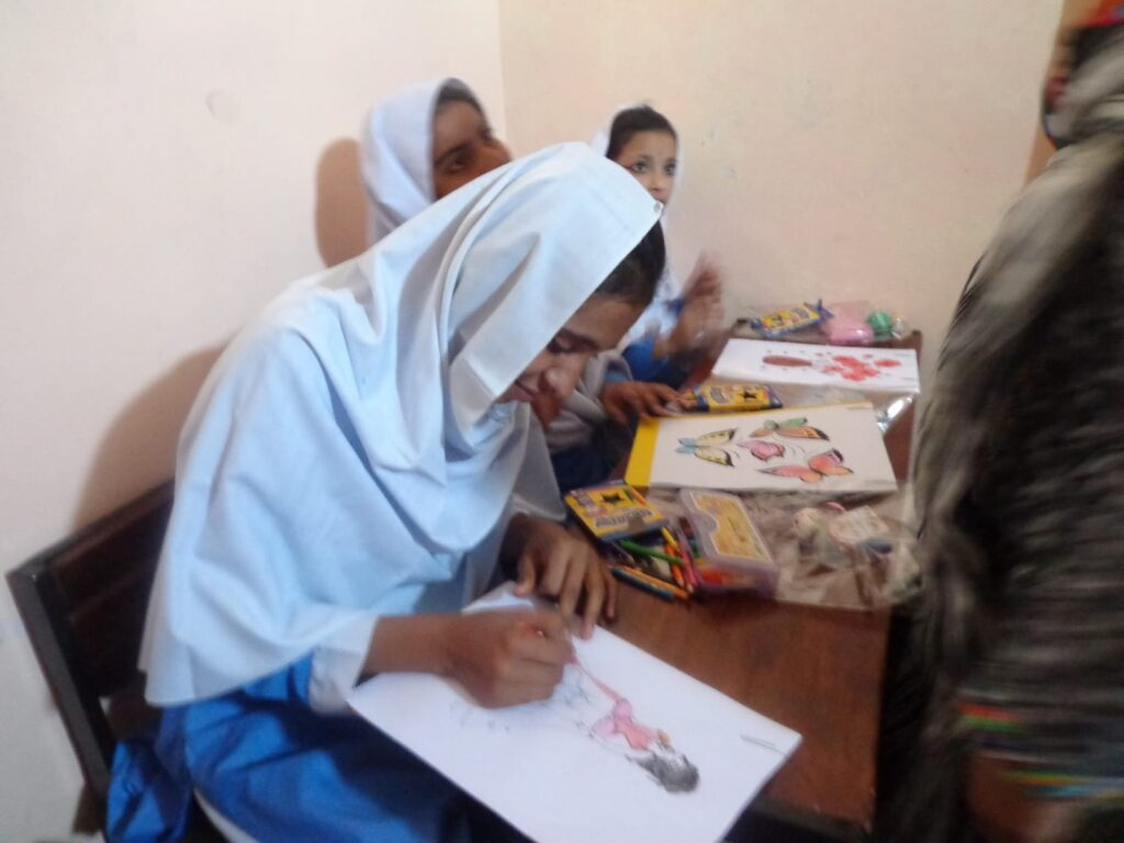 Lala Rose: Children’s art activity at Government Special Education Centre, Bhera. Centre, Bhera. Pictures – Part 4 A . 6 November 2021. Enaya Mumtaz