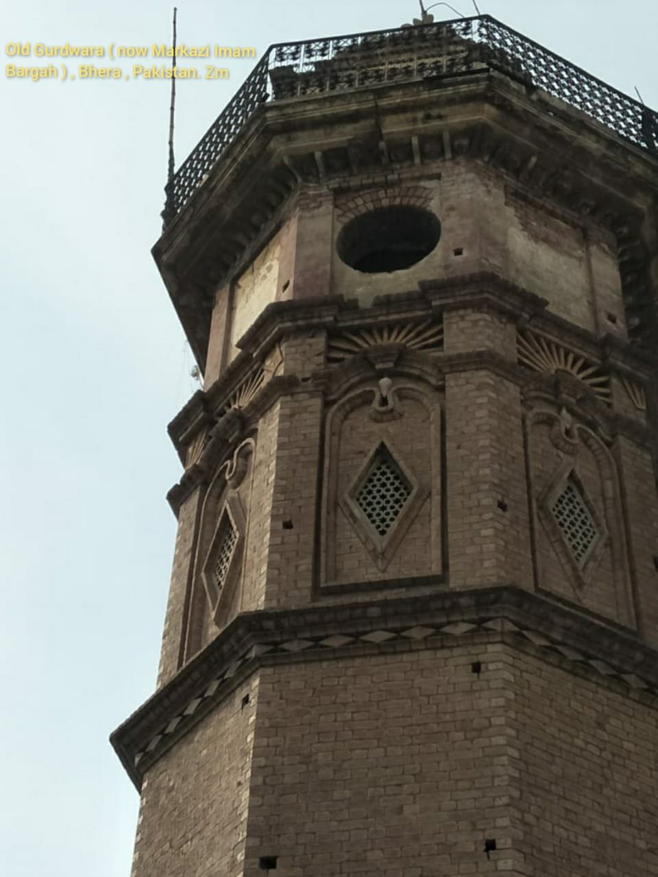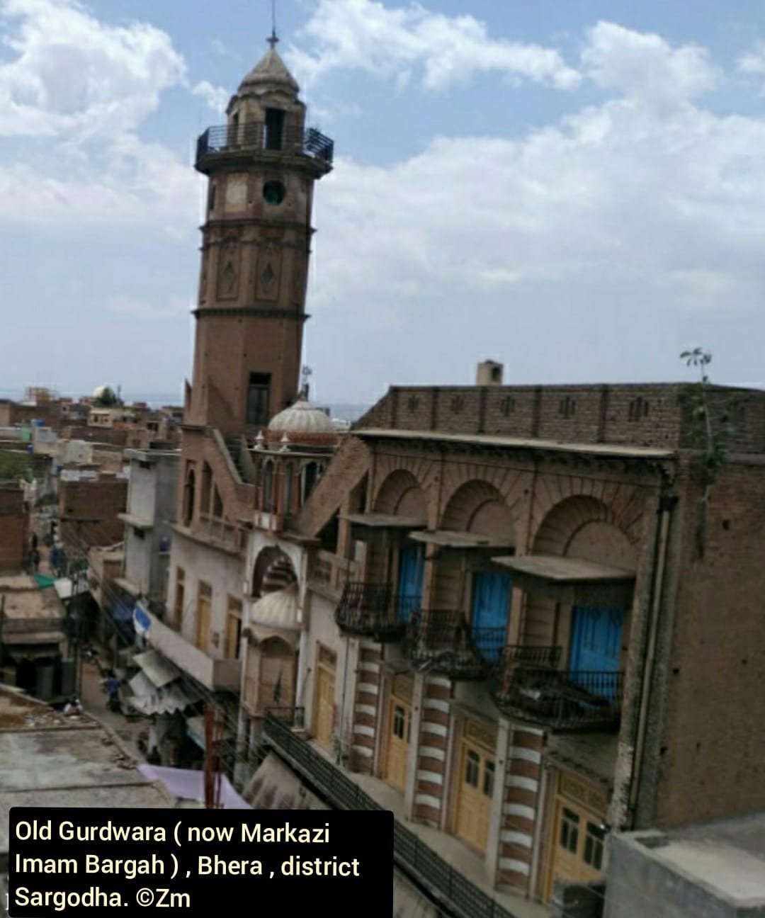 Before Independence in 1947, the old Grudwara of Bhera was located in the dead centre of Walled City Bhera , with its nine darwazas. Now it is Markazi Imam Bargah ( called Imam Kot by the locals ). This state – of – the – art building of its time was easily approachable from any direction. From the top of its tower, one can have an all – round observation miles away . On a clear day, the Salt Range can be seen, and at night, the lights of Khewra town are visible .