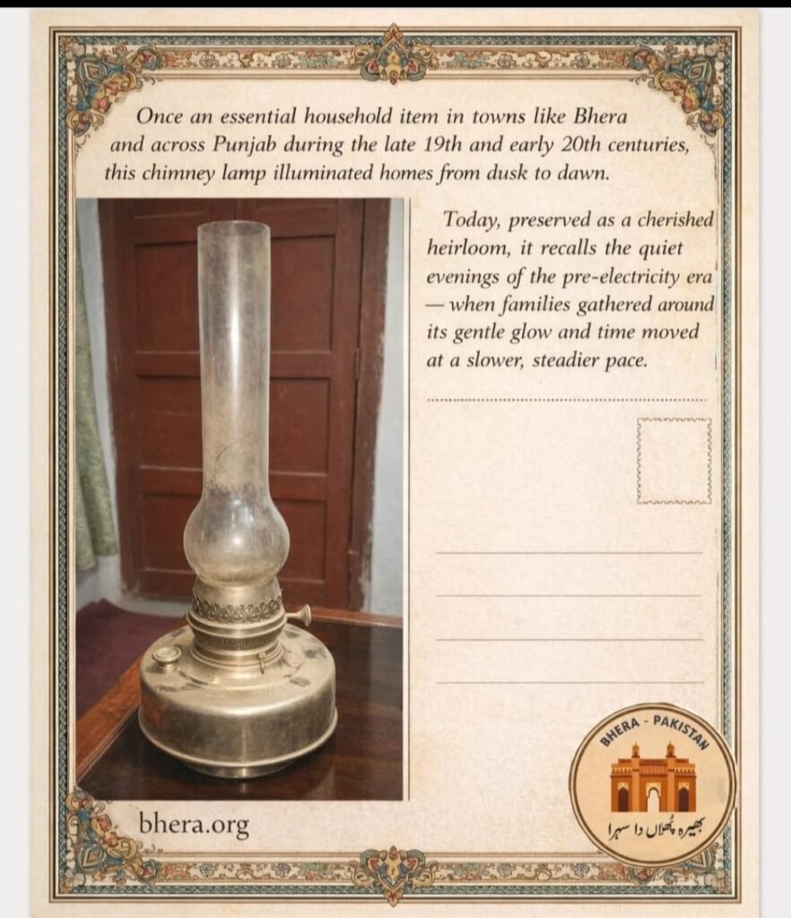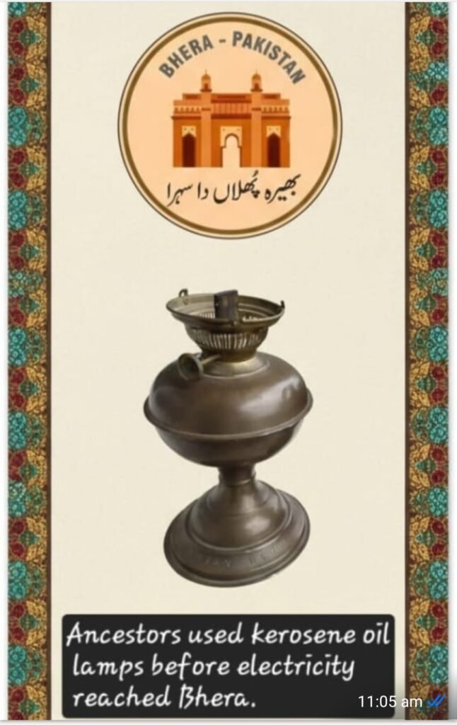Before electricity reached Bhera, our ancestors used kerosene oil lamps of various makes and designs. The lamp shown in the picture was manufactured by Syntax Lamp , Sherwood Limited, Birmingham UK.