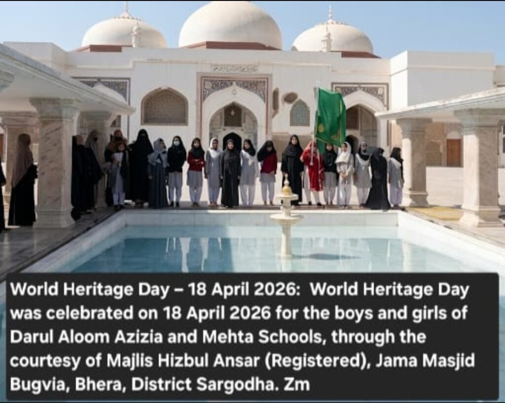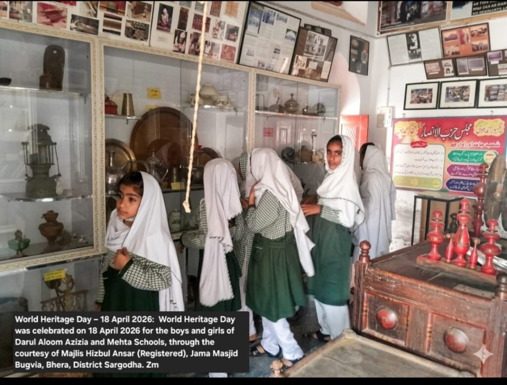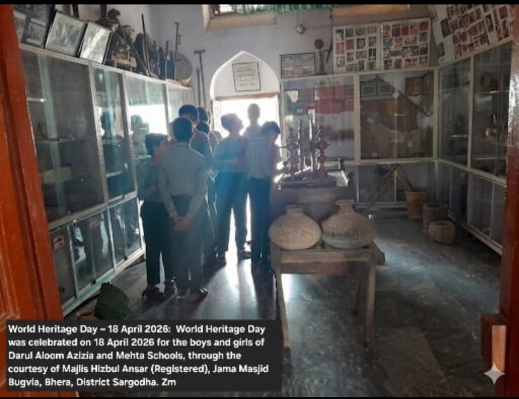 World Heritage Day was celebrated on 18 April 2026 for the boys and girls of Darul Aloom Azizia and Mehta Schools, through the courtesy of Majlis Hizbul Ansar (Registered), Jama Masjid Bugvia, Bhera, District Sargodha. See on the website bhera.org: under the category, Miscellaneous. The link is given below:    Zahid